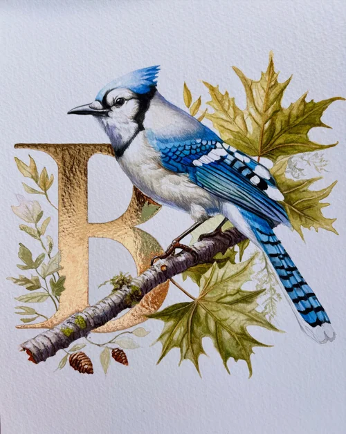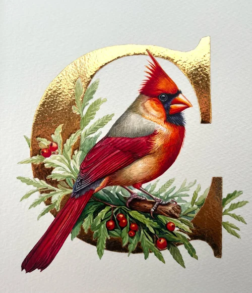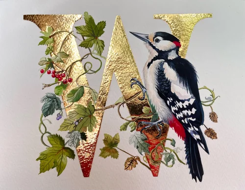 To commission an illuminated letter, simply let me know which letter you’d like, and your preferences for imagery, for instance, wildlife, foliage, or flowers.