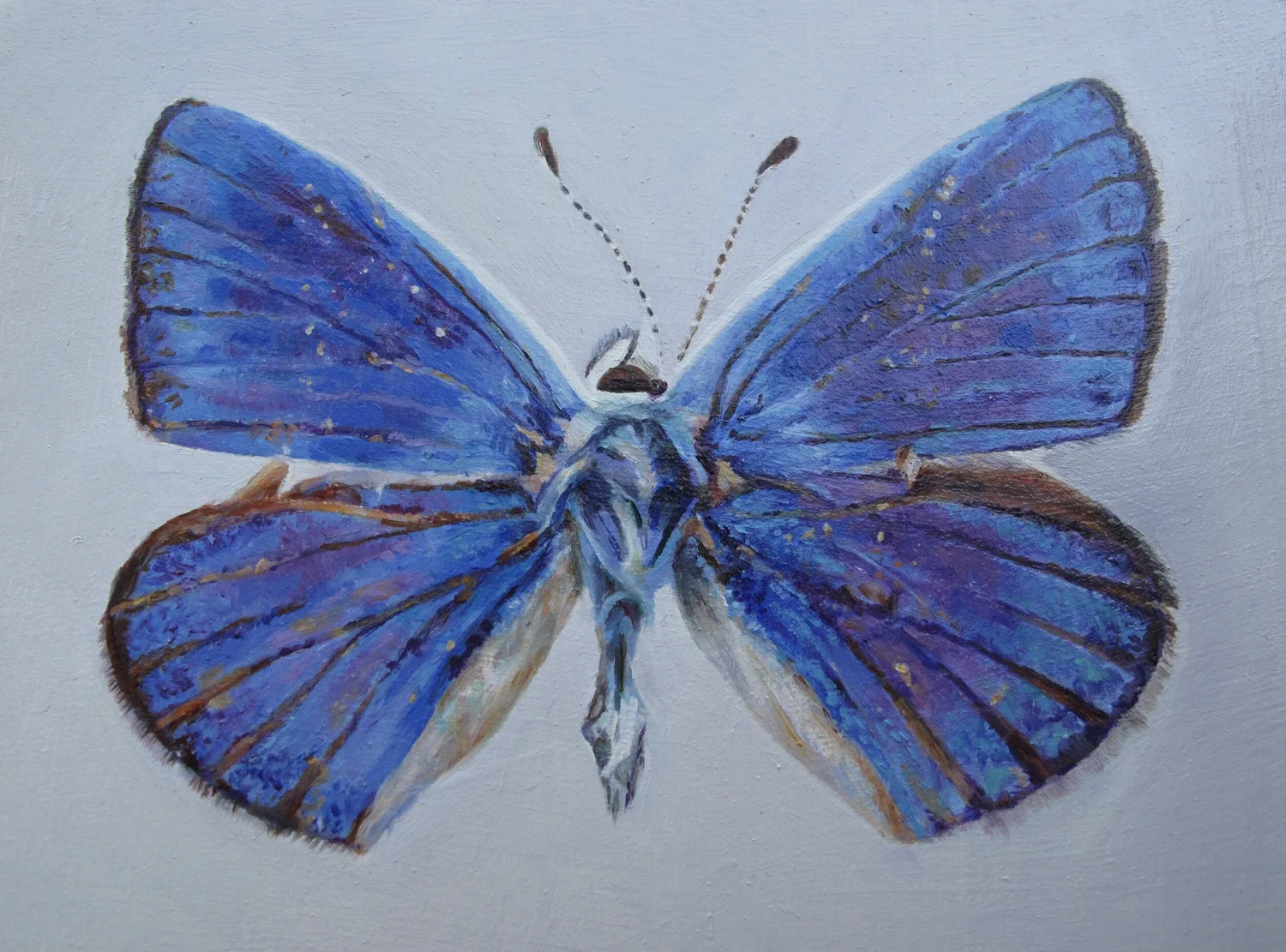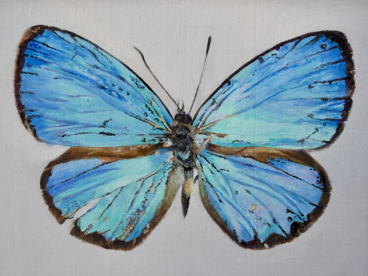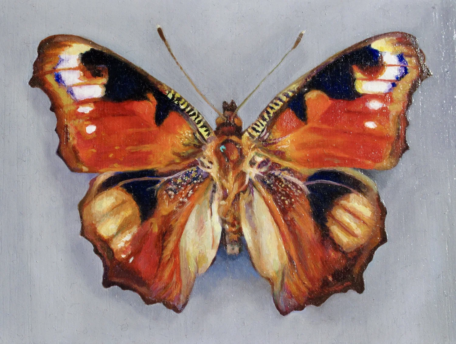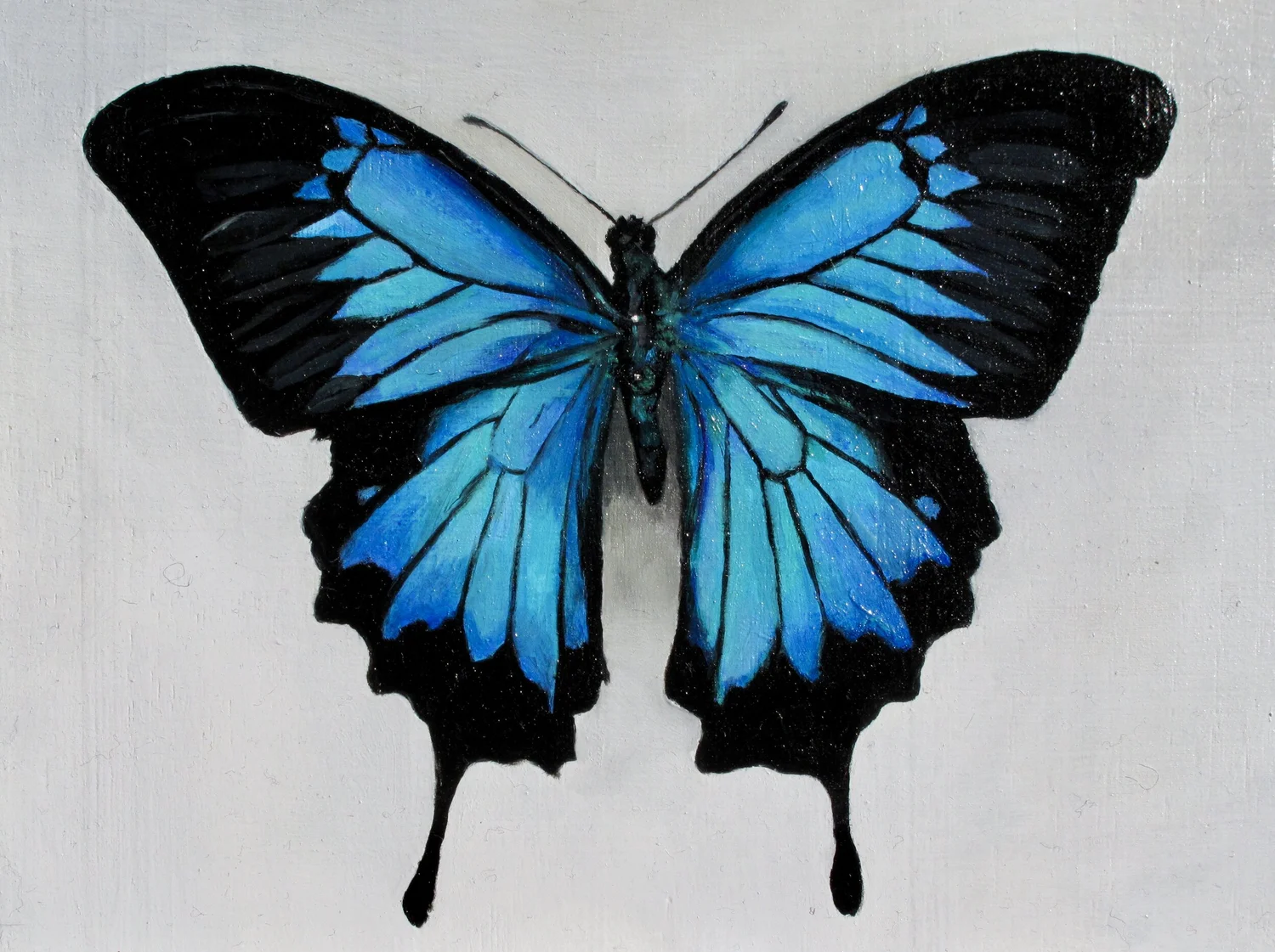 Papilio Ulysses (Ulysses) Oil on oak panel. 4 x 5 inches.