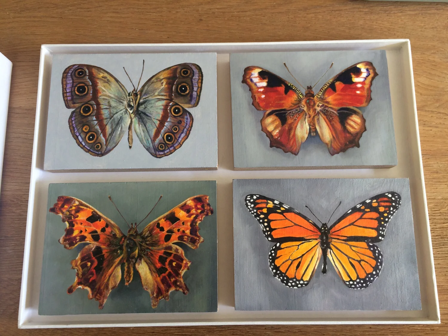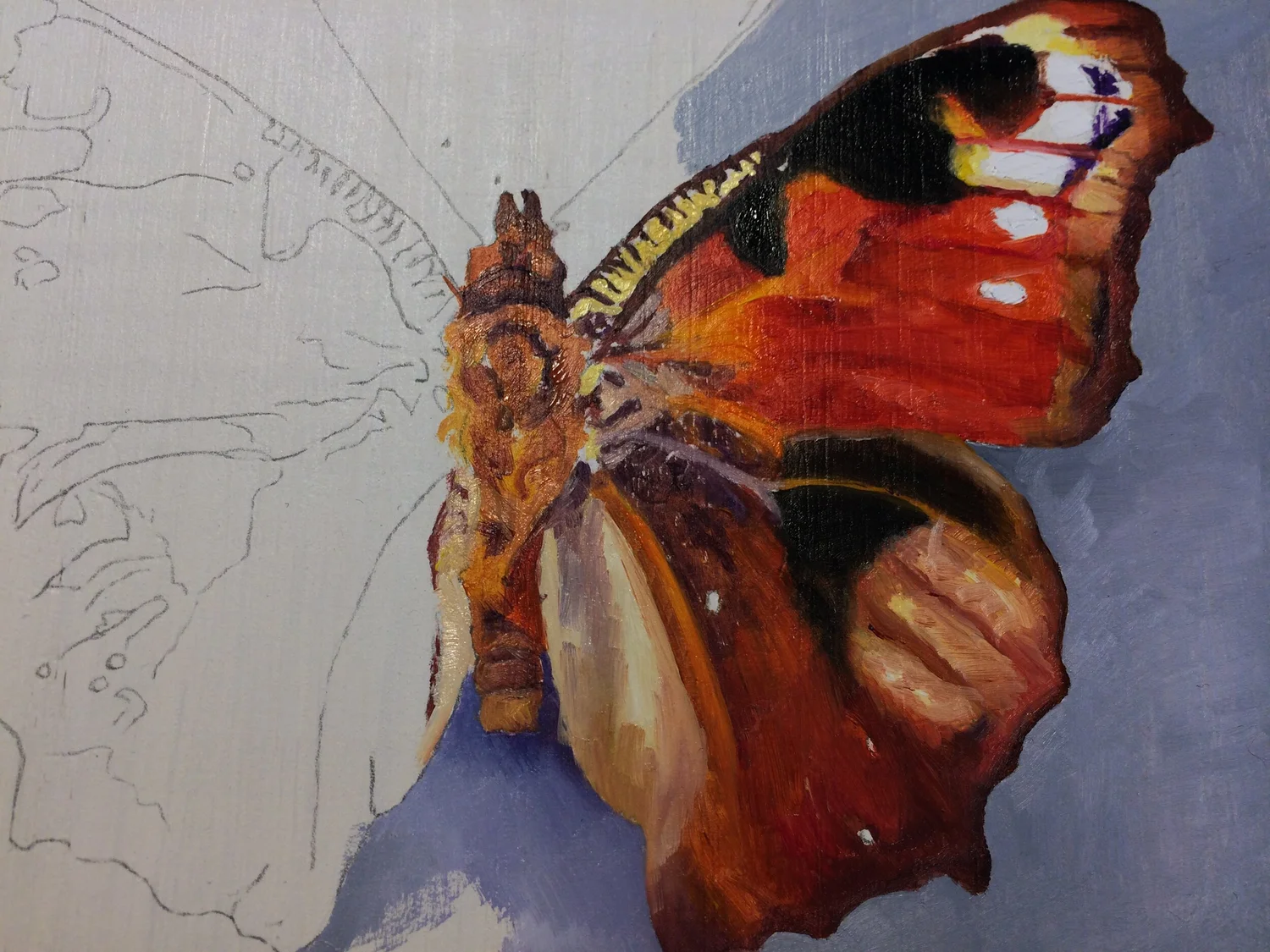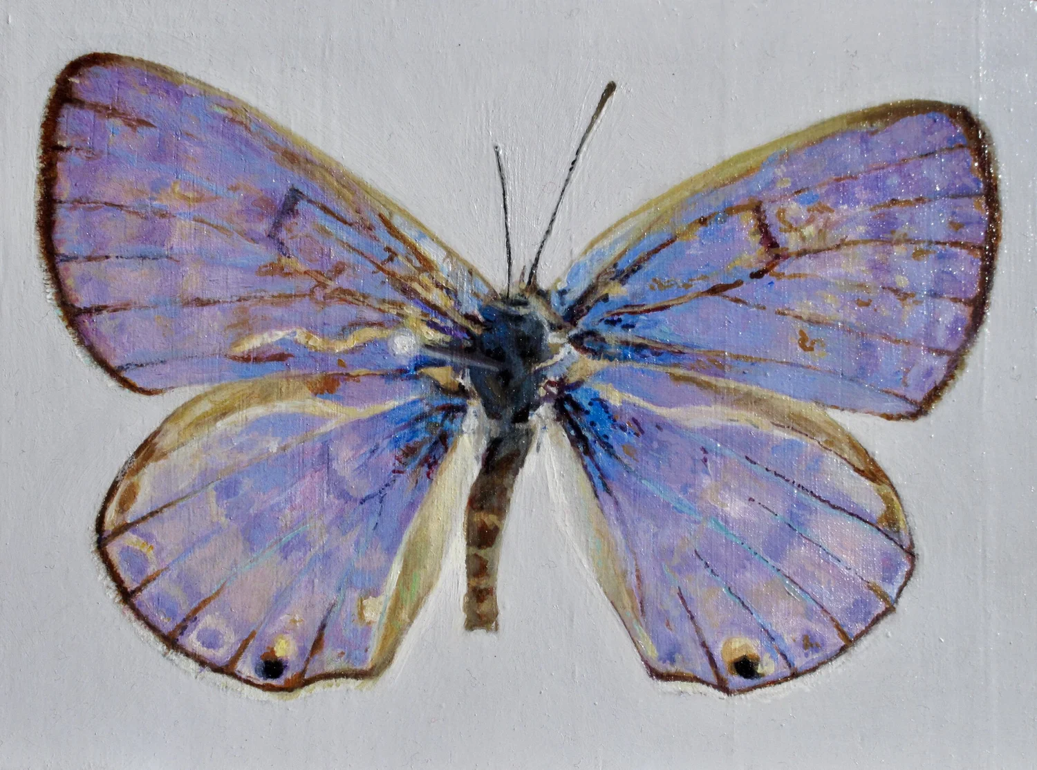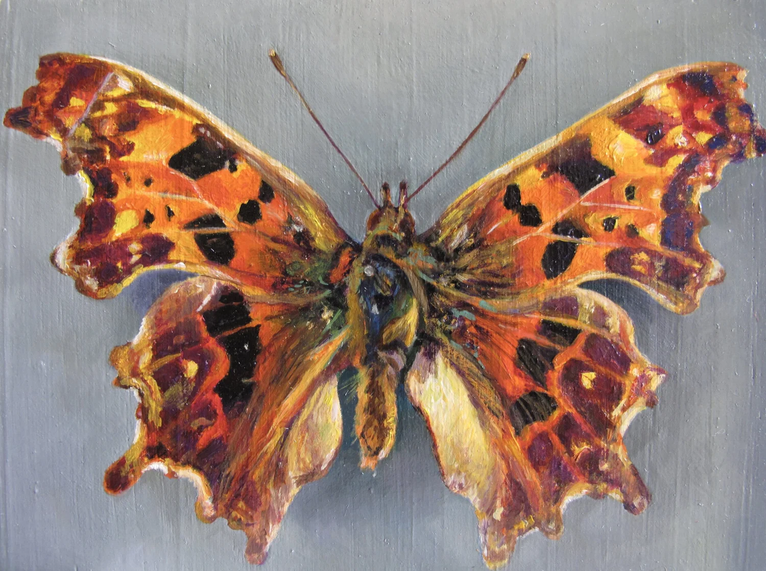Papilio Ulysses (Ulysses) Oil on oak panel. 4 x 5 inches.